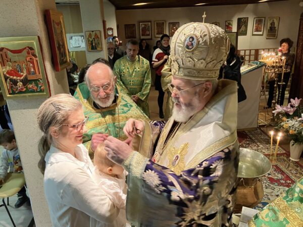 Скъпи приятели, с радост и благодарност към Бога споделяме с Вас подаръците които църковната ни община получи в навечерието на Рождество Христово – поредна прекрасна изложба на православни икони, архиерейско посещение и кръщението на двамата най-малки нейни членове. Вижте как това събитие е отразено в официалния сайт на Светия Синод на Българската Православна Църква – Българска Патриаршия.
