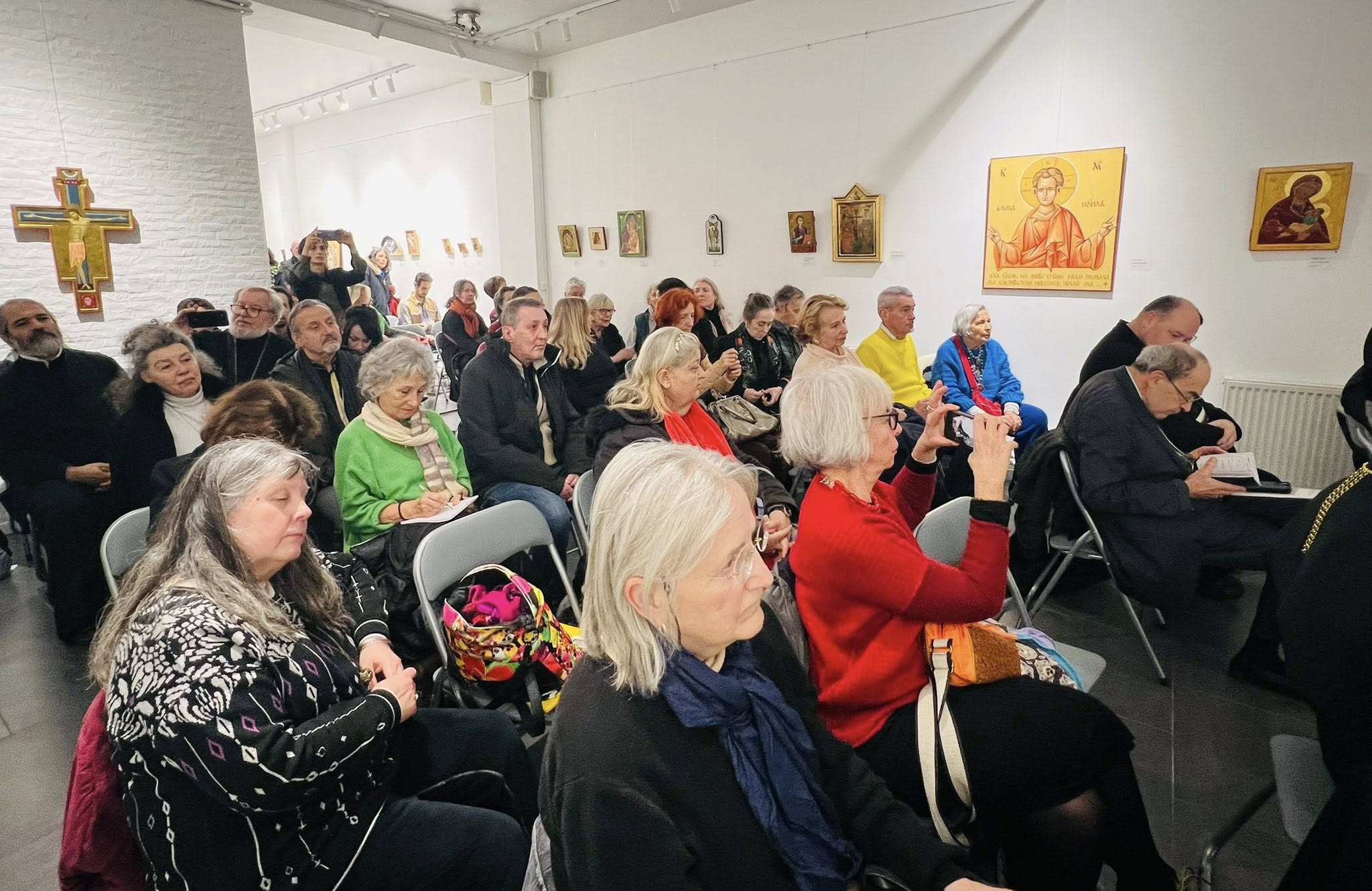 Предлагаме на Вашето внимание и запис от конференцията на български и френски език на тема „Иконата – прозорец към Вечността“, изнесена непосредствено преди вернисажа от главен асистент д-р отец Добромир Димитров, предстоятел на българската църковна община „Св. Йоан Рилски“ в Лондон.