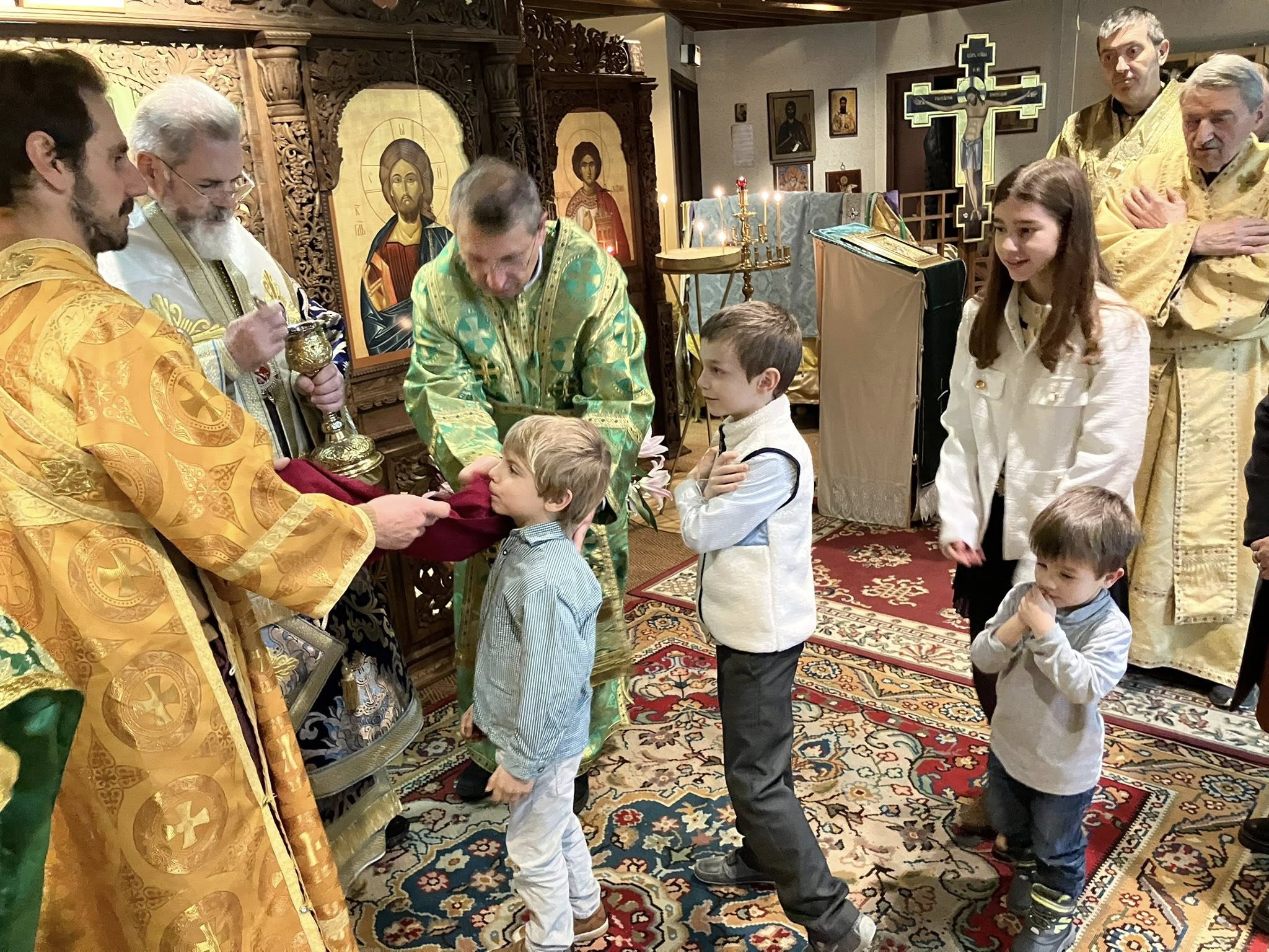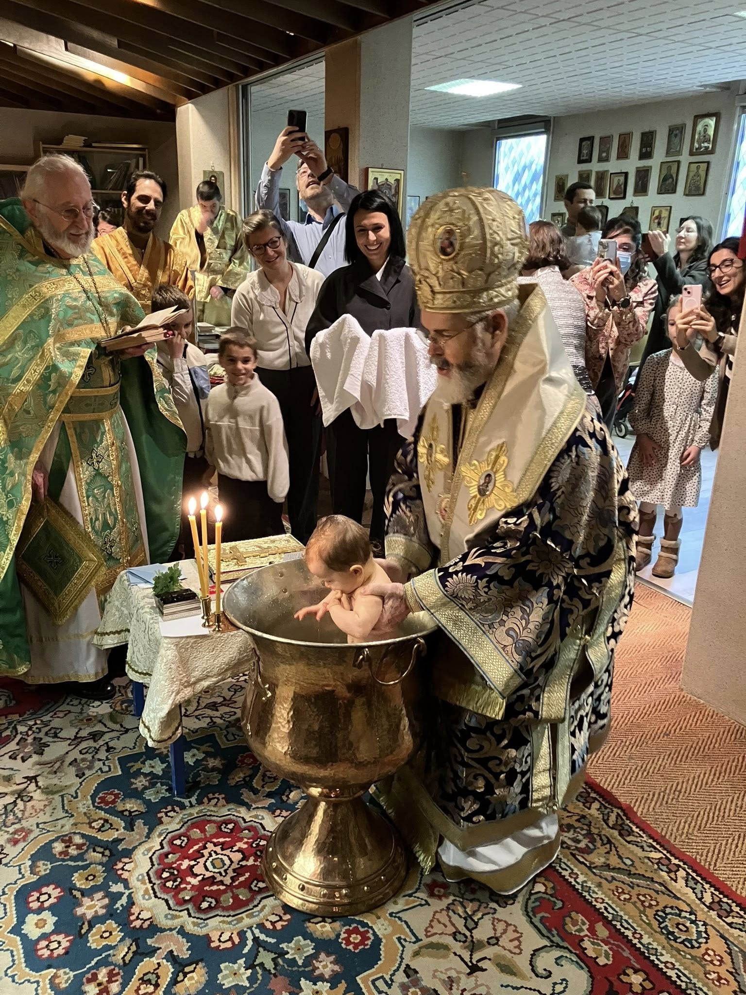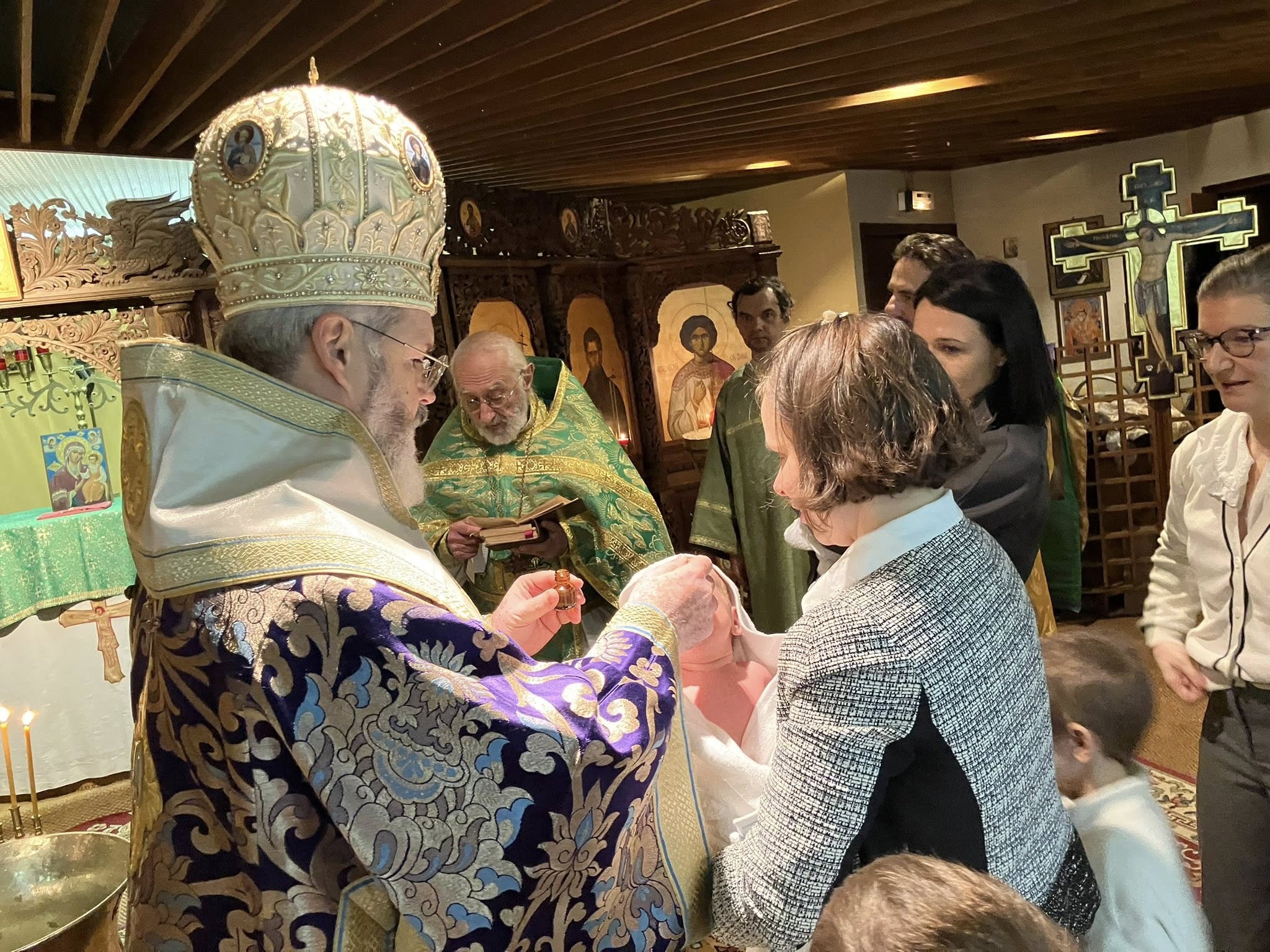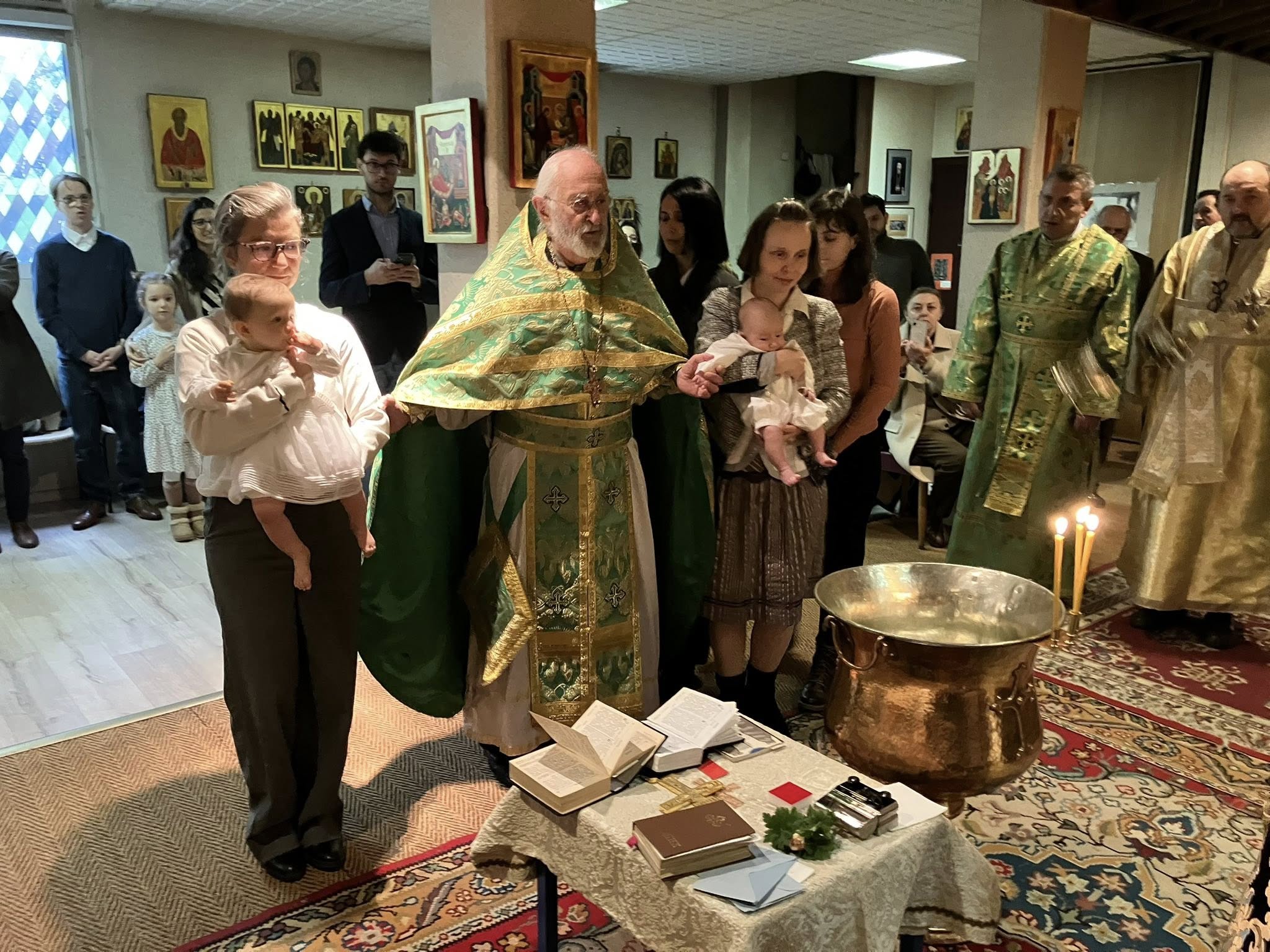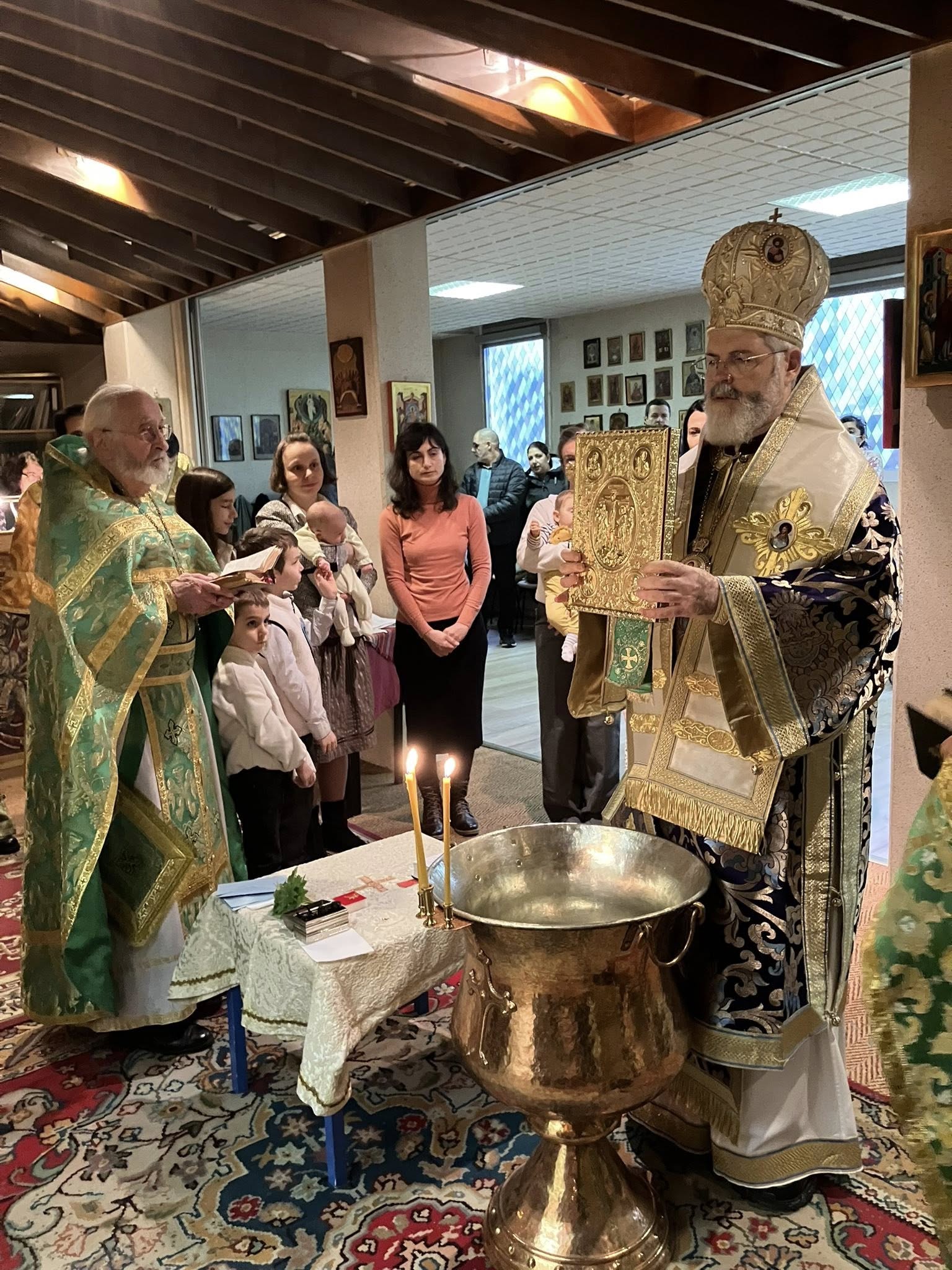 Скъпи приятели, с радост и благодарност към Бога споделяме с Вас подаръците които църковната ни община получи в навечерието на Рождество Христово – поредна прекрасна изложба на православни икони, архиерейско посещение и кръщението на двамата най-малки нейни членове. Вижте как това събитие е отразено в официалния сайт на Светия Синод на Българската Православна Църква – Българска Патриаршия.